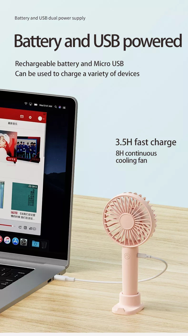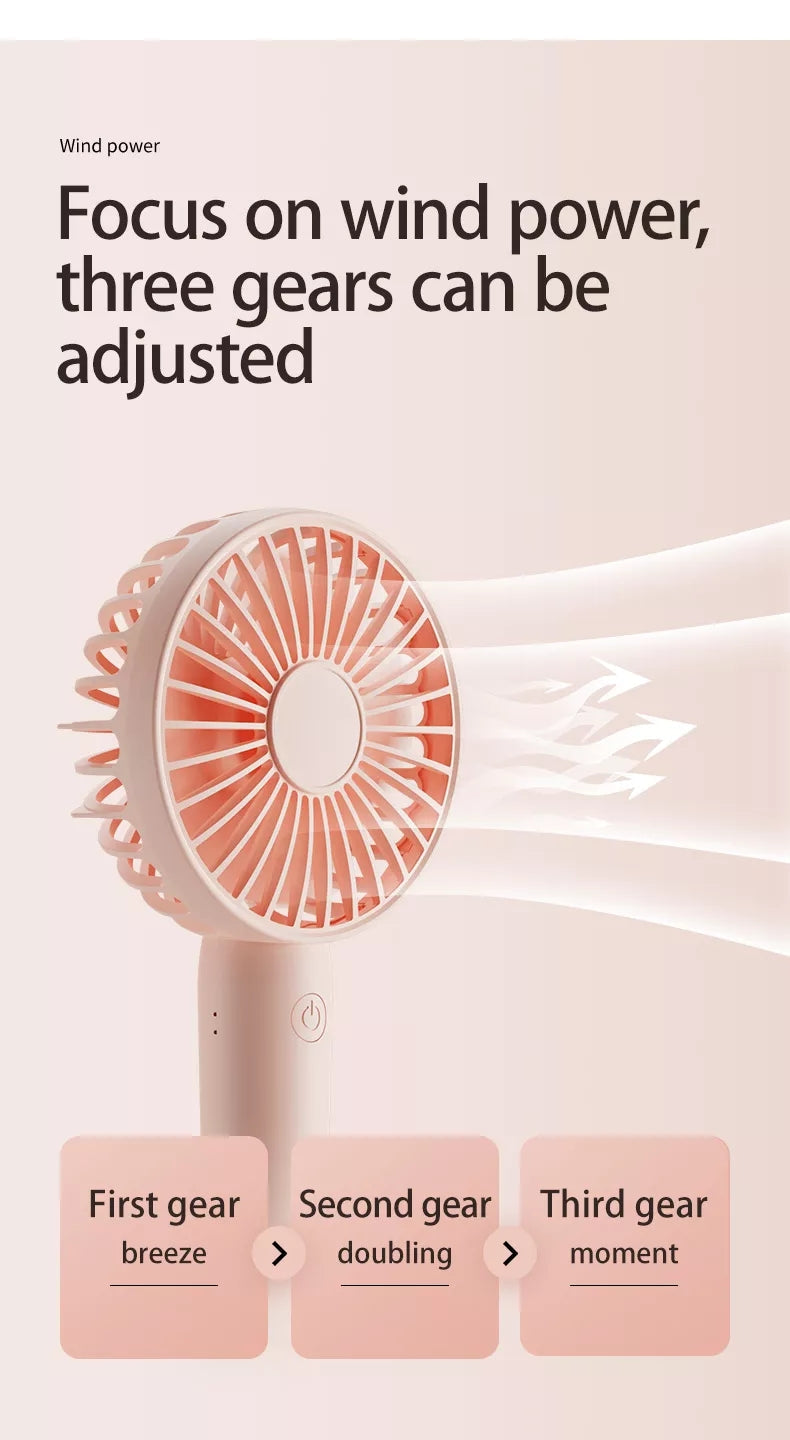 Portable USB Rechargeable Fan Mini Handheld Air Cooling Fan Desktop Ventilation Fan with Base 3 Modes for Travel Outdoor Cooler